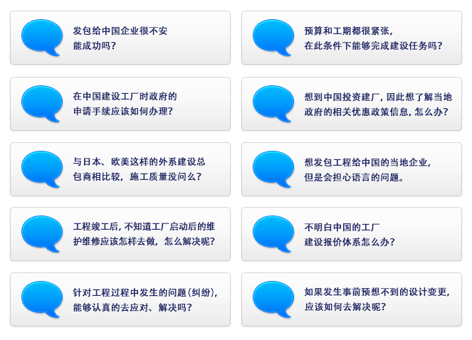 從中國(guó)特有的政府相關(guān)手續(xù)辦理到地方施工企業(yè)的溝通等問題,我們能夠給您最佳的答案。