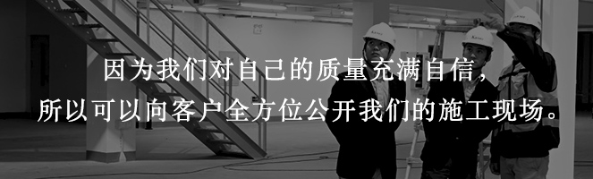 為了讓客戶對(duì)施工進(jìn)展情況放心,施工現(xiàn)場(chǎng)完全是開(kāi)放的。只要客戶有要求,我們隨時(shí)都可以安排客戶到施工現(xiàn)場(chǎng)確認(rèn)。