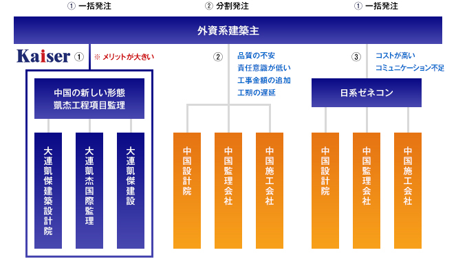 工場建設(shè)における中國獨自の発注形態(tài)。カイザーは、その中でも優(yōu)位性を確立しています。